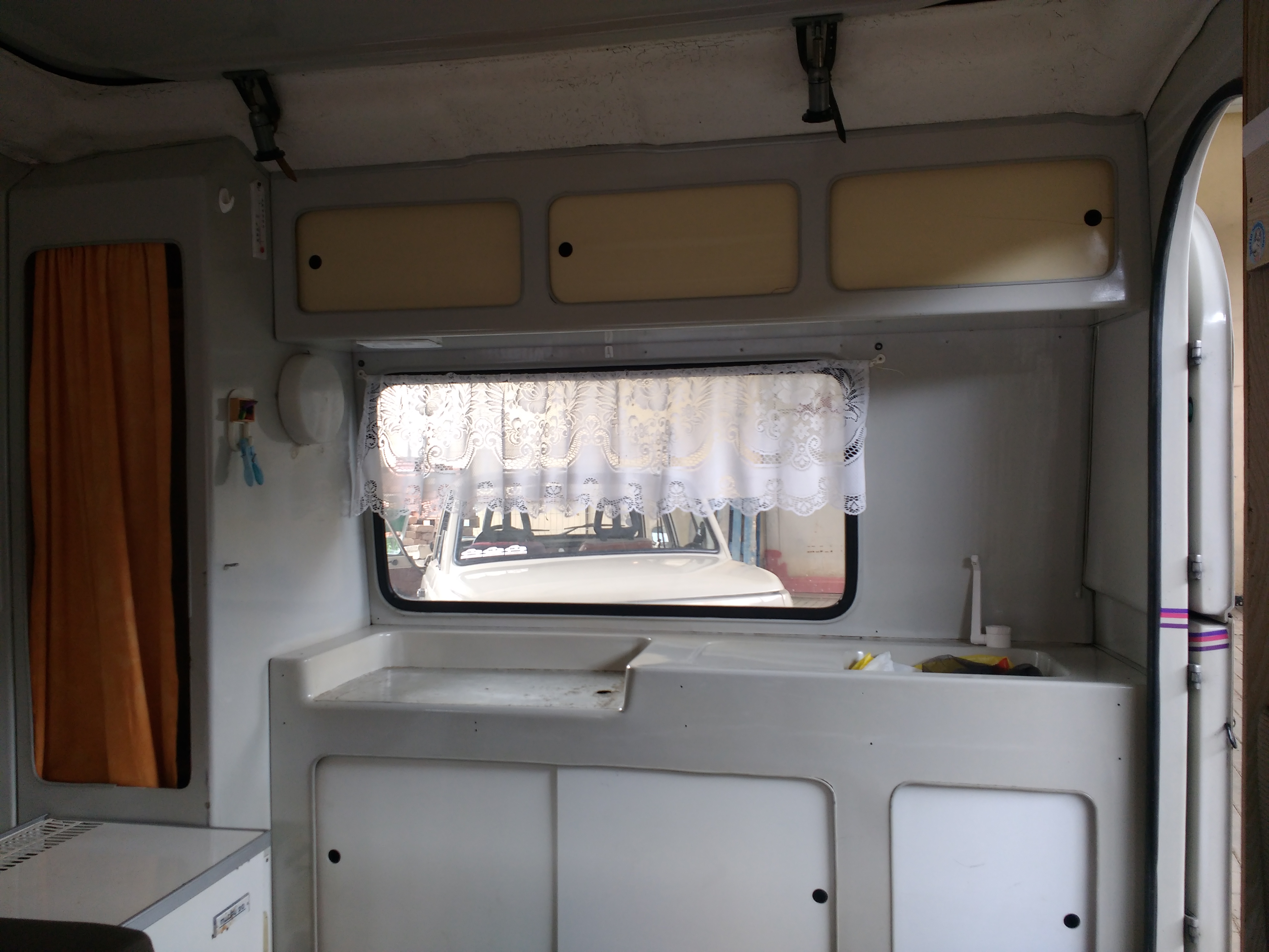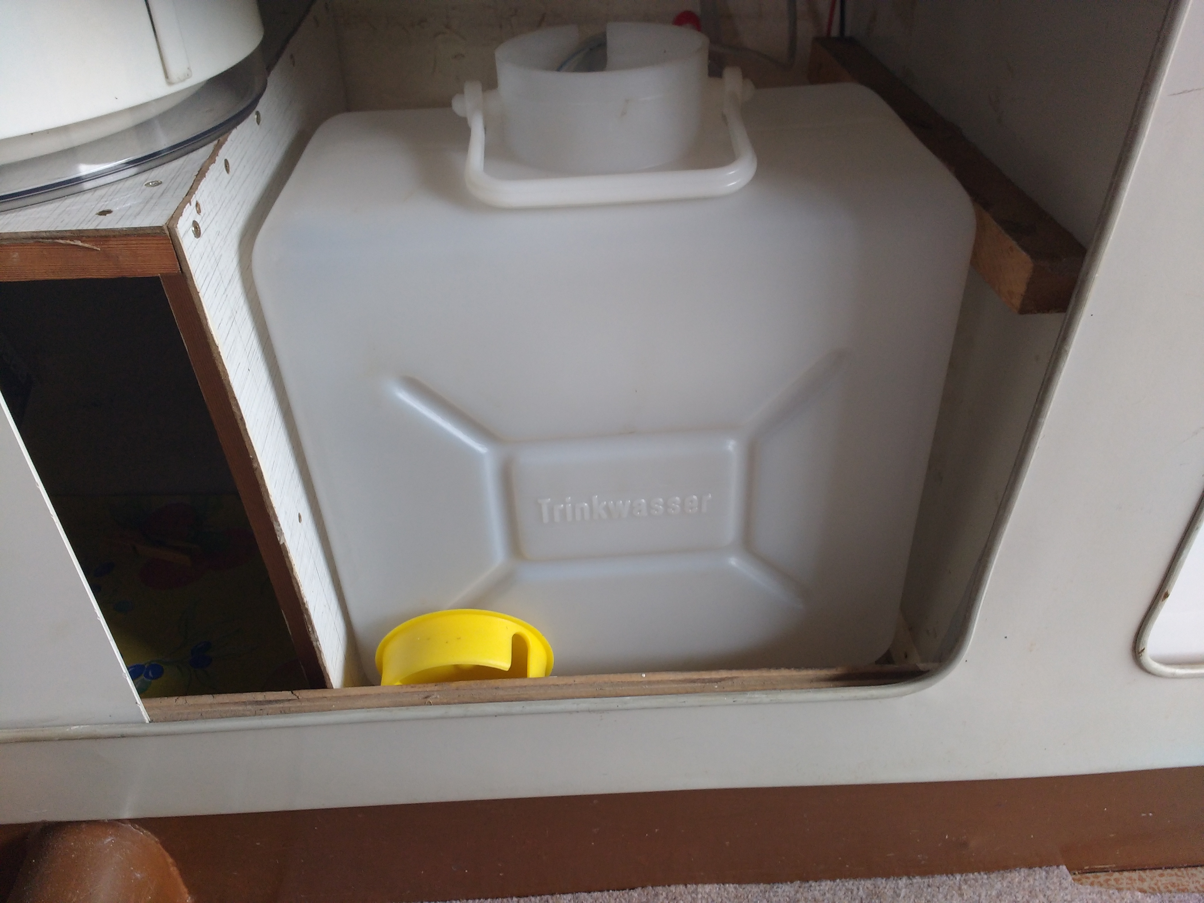 Wassertank und ein Fach zum Transport einer Propangasflasche sowie einem