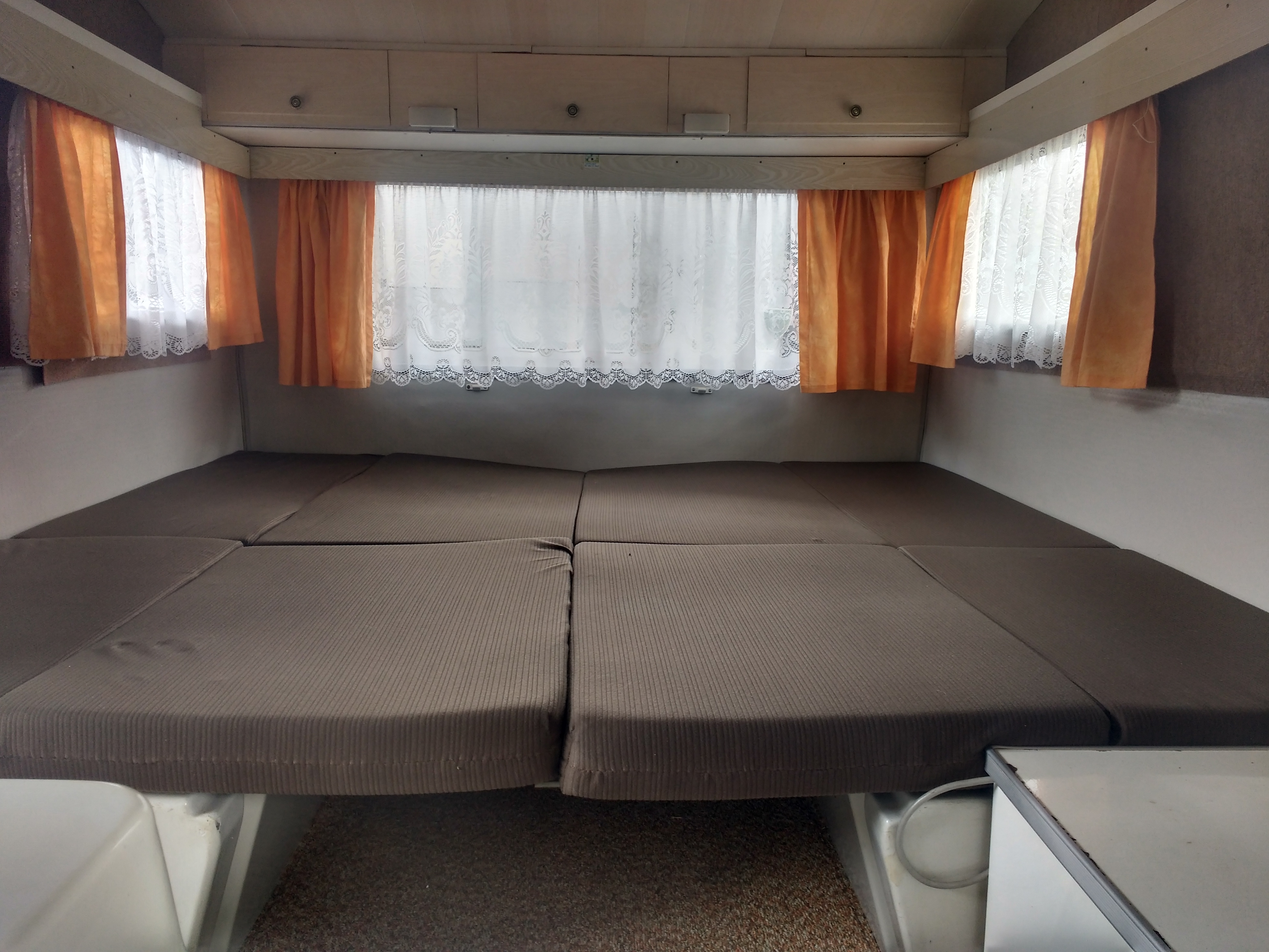 Der Frontbereich ist mit Kleiderschrank sowie 3 Hängefächern einer Ablagefläche